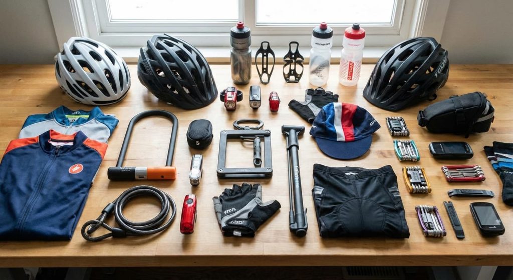 Alt det ekstra, der gør dine ture bedre, herunder hjelme, låse, lys, tasker, pumper, computere og meget mere. Kvalitetsgrej, der holder i hverdagen.